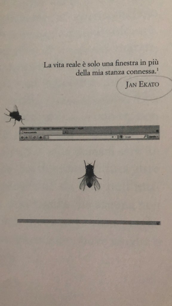 “In quest’intreccio la propria stanza connessa come luogo privato costringe a pensare immaginare la nuova sfera pubblica come avviene con le stanze private degli scrittori. La propria stanza online permette di intervenire attribuire un nuovo significato a questa confluenza. Perché, insisto, nella nostra intimità la stanza online innesca possibilità di azione collettiva e sociale che prima avevano avvenivano solo “fuori dalla soglia”. Nella stanza connessa il pensiero può essere già comunicazione, memoria e azione pubblica; l’attività può essere remunerata senza spostamento fisico, praticabile e sempre più incentivata da imprenditori, amministrazioni pubbliche e imprese, le relazioni affettive, implementate attraverso un’interfaccia, cosicché oggi la propria stanza online amplifica il potere di pensiero (concentrazione) e di azione da una posizione localizzata.