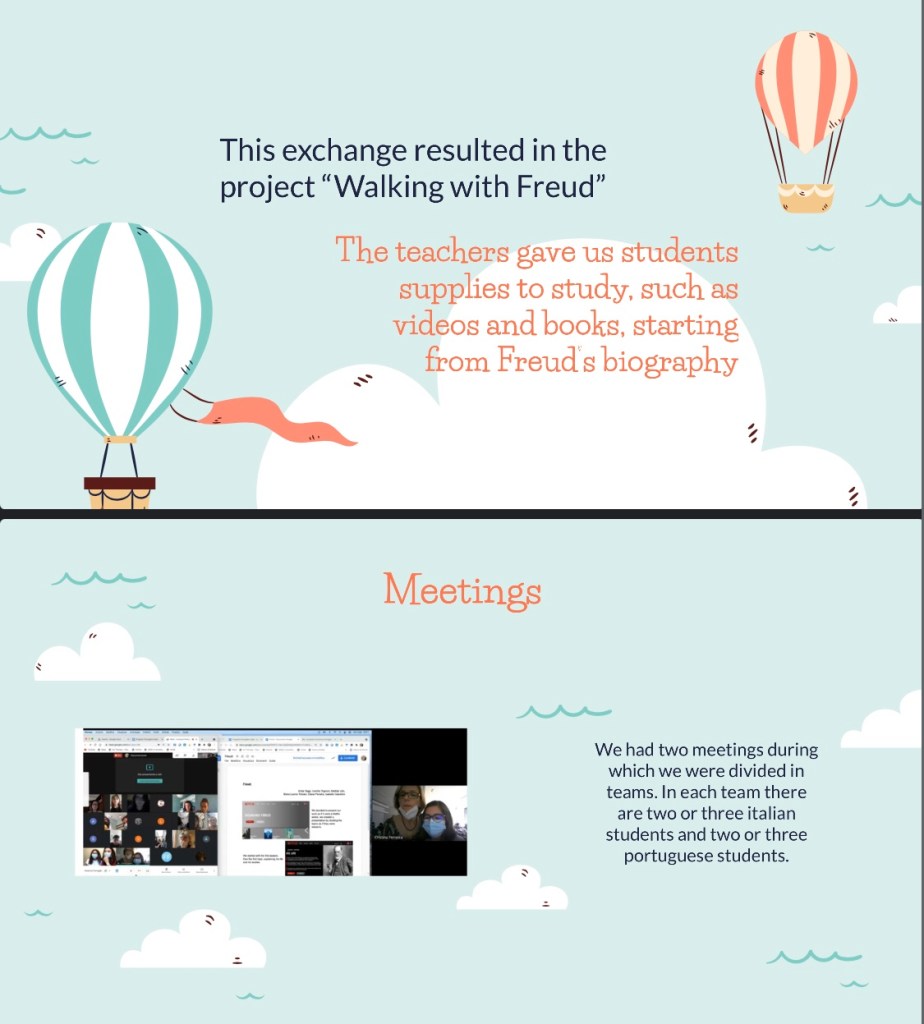 Gli studenti sono stati suddivisi in gruppi di studio con la presenza di entrambe le nazionalità. Attraverso una visita virtuale al Museo della casa udi Freud a Londra, hanno iniziato a studiare la sua vita e le sue opere.